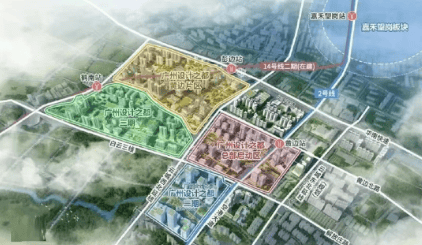 轨道交通:项目约 200 米直达在建的 14 号线鹤南站,约 1 公里抵达 2 号线黄边站。待鹤南站开通后,通勤时间将大大缩短。14 号线二期(嘉禾望岗 - 广州火车站)预计 2025 年建成,届时 6 个站可达广州火车站,接驳 5 号线可通达珠江新城。