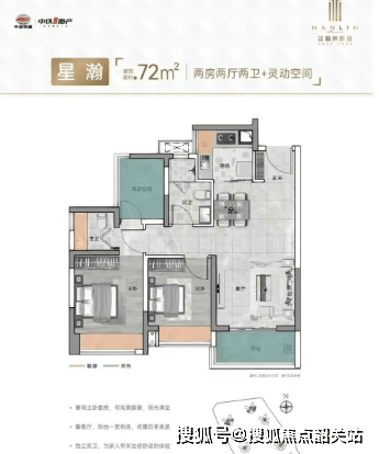 项目精准契合刚需及首改家庭需求,主力户型涵盖72㎡、82㎡、92㎡、95㎡及120㎡,均为精装修现房。其中72㎡三房两卫户型尤为亮眼——在同等面积下实现双卫配置,主卧带独立卫浴,功能分区合理,南北通透(部分楼栋),实用率高达92%,远超市场平均水平。点式布局的9栋高层住宅,最大限度减少楼间距遮挡,保障采光与通风,提升居住舒适度。