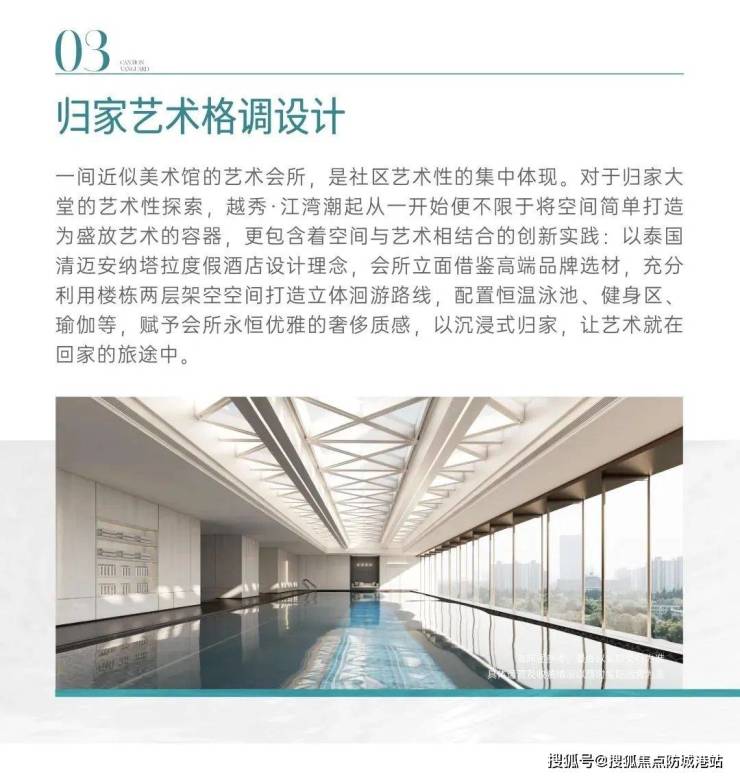 容积率仅2.8,绿化率超35%,越秀江湾潮起以“滨江生态廊道”为设计理念,打造“一轴三园九境”立体园林。楼间距最宽达120米,确保每户观江视野无遮挡;社区内配置约1500㎡高端会所,涵盖恒温泳池、私宴厅、健身空间等。