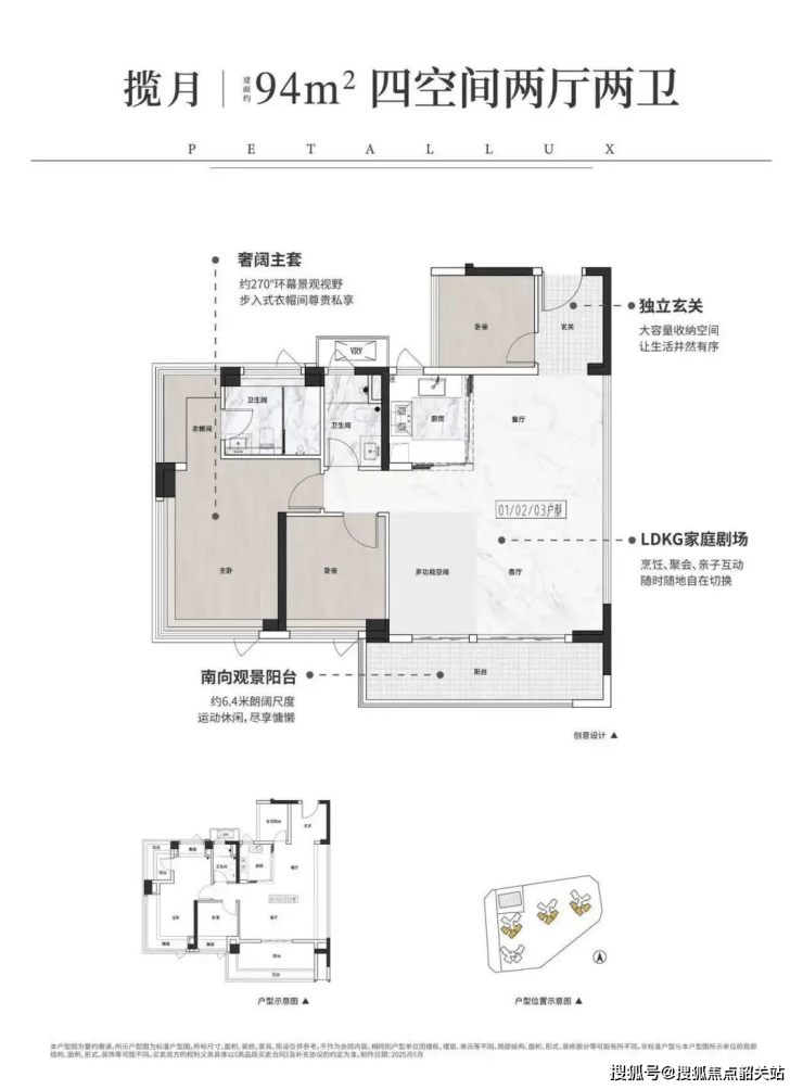✅ 125㎡四房三卫:双主卧套房+入户花园,私享电梯厅,改善型首选。