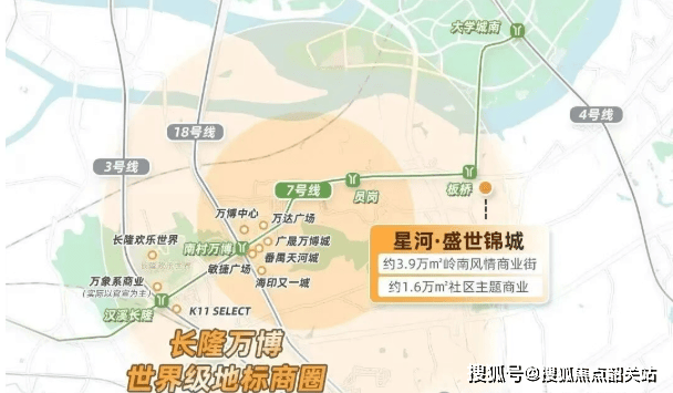 星河·盛世锦城雄踞番禺万博板块北侧,紧邻余荫山房与地铁7号线板桥站,地处南大干线经济带上的“黄金财智走廊”。这一区域不仅是连接珠三角东西岸的重要发展轴心,更串联起广州南站、长隆万博、国际创新城、汽车城等关键经济引擎。