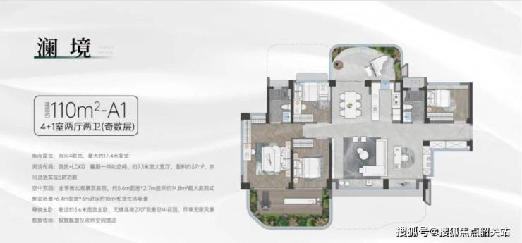 超大的横厅设计,面宽惊人,配合270度的景观视野,将窗外的中轴涌公园美景尽收眼底。空中花园的面积也相应增大,足以容纳更多的绿植和休闲设施,成为一个真正的私人空中会所。