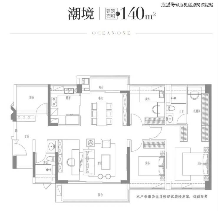 140㎡潮境户型:4室2厅2卫,总价375万起,270°转角飘窗,6.3米阔景阳台
