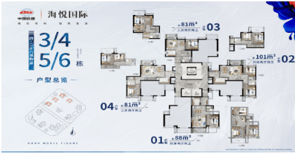 海悦国际的物业服务由世界 500 强之一的中国铁建旗下全资子公司提供,2021 年在中国百强物业中排名 22,其服务深入全国 22 个城市,服务约 40 万业主,为业主提供尊崇的品质生活体验。产品方面,项目提供平层 99 - 131㎡三至四房以及复式 81 - 101㎡三至四房多种选择。7 栋楼王单位的平层产品,两梯四户,超宽楼间距,99㎡三房户型可观赏西地块园林,131㎡四房户型能欣赏中心园林及泳池景观,居住舒适度极高。复式 5 - 6 栋产品为南沙唯一在售咬合式小户复式,高使用率达约 85 - 104%,买一层得两层,东向及南向可观中心园林及泳池景观,唯一性与舒适性兼备。