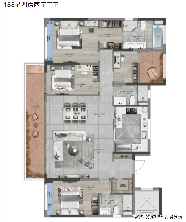 168㎡四房两厅三卫户型,定位高端改善,空间宽敞大气,布局合理,南北通透,采光通风俱佳。客厅连接超大江景阳台,推窗即见壮阔江景,让业主能够享受“推窗见江”的诗意生活;主卧配备独立卫浴、衣帽间与观景飘窗,空间宽敞舒适,彰显业主的尊崇身份;三个次卧空间充足,其中两个次卧配备独立卫浴,保障了家人的私密性与舒适度;书房空间宽敞,可作为办公或休闲空间,满足业主的多样化需求。