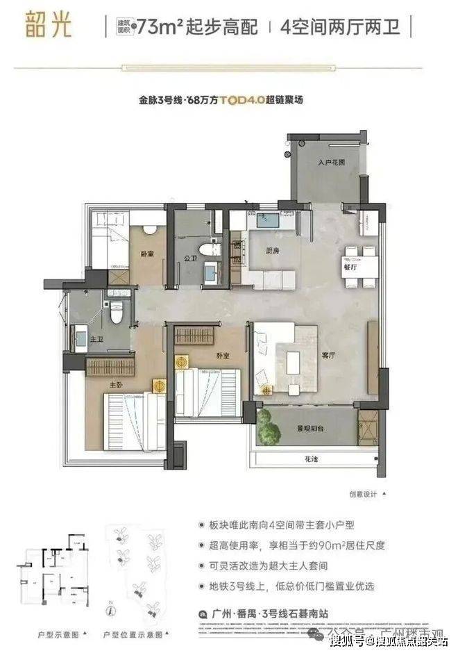 答:项目属于三号线沿线TOD综合体,轨道交通成熟运行,可快速连接天河、珠江新城及番禺核心区域,通勤效率具有确定性。