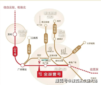 项目距离广州南站约 8 公里,自驾 15 分钟、地铁 22 号线 1 站直达,广州南站作为华南地区最大的交通枢纽,衔接高铁、城际、地铁等多种交通方式,可快速通达珠三角、全国乃至全球城市。此外,项目距离白云国际机场约 40 公里,经华南快速 + 机场高速,40 分钟可达,满足商务出行、旅游出行的跨城需求,让居住者的生活半径延伸至全国。