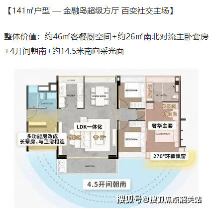 海语・天悦湾的户型设计独具匠心,楼栋采用蝶形布局,全户型南向,兼顾东面河涌及南面江景资源,最大化视野景观。项目主推 80-140㎡全南向三至四房,满足不同家庭的居住需求。其中,96㎡户型是金融岛明星户型,拥有 7.6m³ 整墙收纳空间,5㎡全景厨房,270° 景观主卧套间,让生活更加舒适便捷。123㎡户型则是三代居标杆,约 26㎡南北对流主卧套房,金融岛唯一阳光玄关,4.5 开间朝南,还可改双套间,为家庭提供了更多的居住空间和舒适度。141㎡户型是金融岛超级方厅,约 46㎡客餐厨空间,约 26㎡南北对流主卧套房,4 开间朝南,约 14.5 米南向采光面,是百变社交主场。