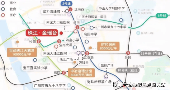 珠江金瑶台的周边配套成熟度极高,完全能满足居民日常各类需求。教育方面,项目对面就是昌岗中路小学和海珠江南外国语学校,周边还有广州市南武中学、广州市第五中学、广州市海珠外国语实验中学等优质学府,虽对口的汇源大街小学为普通区一级学校,但丰富的教育资源仍为孩子成长提供了多样选择。商业配套更是亮眼,周边有富力海珠城、江南新地、江南西名店城、万国奥特莱斯、广百广场、乐峰广场和海珠新天地等多个商业体,几百米外还有平价的沙园市场,日常购物、休闲娱乐、采购食材都十分方便。医疗资源上,广州医科大学附属第二医院、南方医科大学口腔医院、南方医科大学珠江医院、妇幼保健院等多家医院环绕,为业主健康保驾护航。休闲方面,十香园、拥有 400 年古迹的晓港公园、沙园公园、庄头公园以及广州美院等,为居民提供了休闲散步、文化熏陶的好去处。