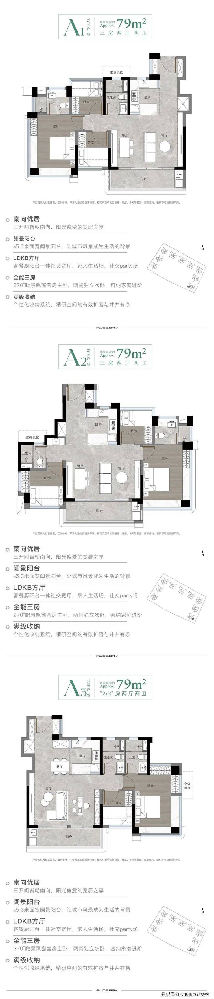 项目主推79㎡三房(得房率82%)、108㎡四房(得房率102%)、142㎡四房(得房率110%),采用LDKB一体化设计,南北通透,全明格局。142㎡户型更配备双主卧套房+华为全屋智能系统,支持语音控制灯光、空调、窗帘,打造科技住宅标杆。