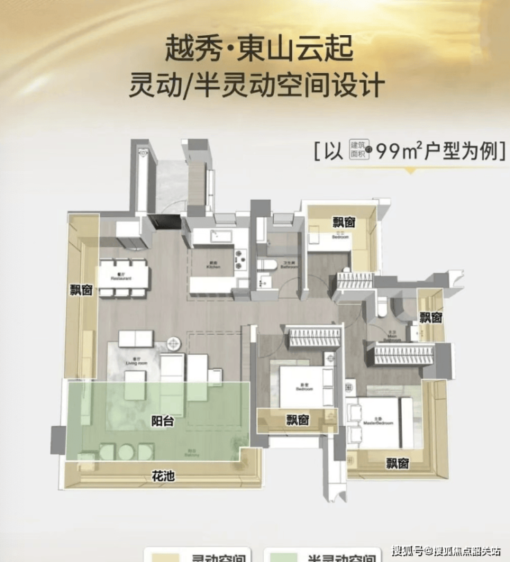 99㎡三房(主力):东南 / 西南向,承重墙少、可灵活改造,可做大方厅 + 豪华主套,低门槛入主越秀城芯新规豪宅;