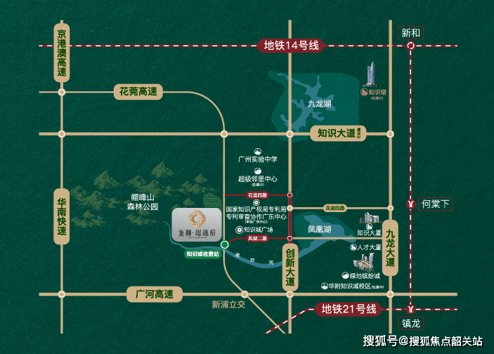 龙狮璟珑府位于中新广州知识城核心区域,毗邻帽峰山,靠近凤凰湖与九龙湖,自然资源得天独厚。知识城作为中国与新加坡国家级双边合作项目,近年来发展迅猛,聚集3700多家跨国企业,总产值超5500亿元,区域前景可期。