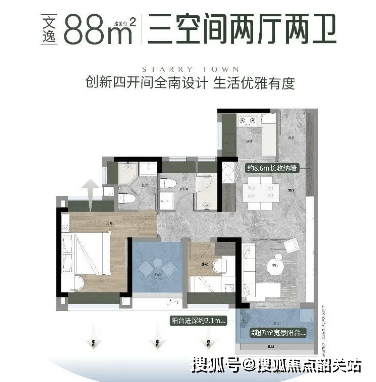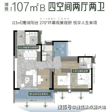 小区主力户型从88㎡三房到125㎡五房,全部做到户户朝南,且普遍拥有270°宽景阳台。我特别留意了88㎡那套小户型——三间卧室全朝南,11米景观面配上约10米的收纳墙,把小面积的实用性拉满了。而107㎡和125㎡的版本,则通过南北对流、双面宽阳台、独立衣帽间等设计,在有限面积里做出更多生活层次。这些不是图纸上的理想,而是已经交付的精装现楼,所见即所得。