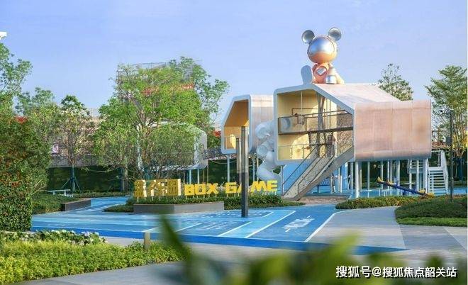 社区内部景观设计突出生态生活理念。项目规划了约4万平方米的园林式中央花园景观系统,采用大中庭式布局,楼栋之间最大楼间距超过200米,使住宅空间拥有更开阔的景观视野。园林内部结合儿童活动空间、休闲步道以及健身场地等功能模块,营造多年龄段居民都能够使用的社区公共空间。社区还引入星际熊IP主题生活场景,打造双泳池配置、健身区域以及儿童娱乐空间,使家庭型居住需求得到较好满足。