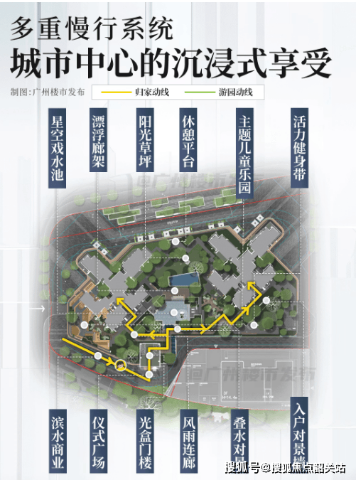 其三,社区配套精致,兼顾休闲与社交。尽管项目地块分为两块,楼栋数量不多,但社区配套规划精致,打造了丰富的休闲空间:以星空戏水池为C位的漂浮客厅,串联起廊架、观景平台等多个休憩空间,自带社交属性;游园动线涵盖戏水池、廊架、休憩平台、大草坪、儿童乐园和运动场地,为业主提供多元化的休闲玩乐空间,如同“情绪缓冲通道”,帮助业主卸下都市生活的疲惫,找回舒适状态;同时,项目规划的滨河商业,也进一步丰富了社区业态,为板块商业配套进行补强。