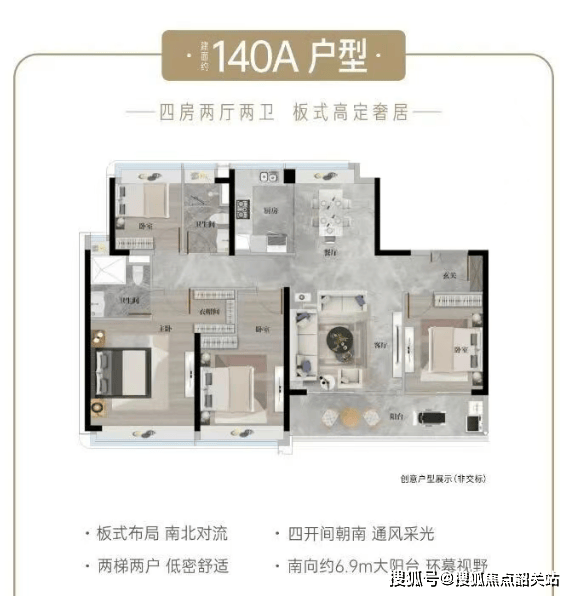 在售房源方面,项目推出了多款针对不同家庭结构的高定户型,从140平方米的四房到253平方米的五房,每一款都是精雕细琢的杰作。其中,建面约140平方米的A/B两款四房,主打高性价比和景观视野。A款户型北望长隆野生动物世界,南瞰北美暖林境,板式布局确保南北对流,全屋精装交付,酒店式星级居所享受。B款户型则低密17F小高层,约7.5米宽阳台,四开间朝南,南北通透,采光通风极佳。