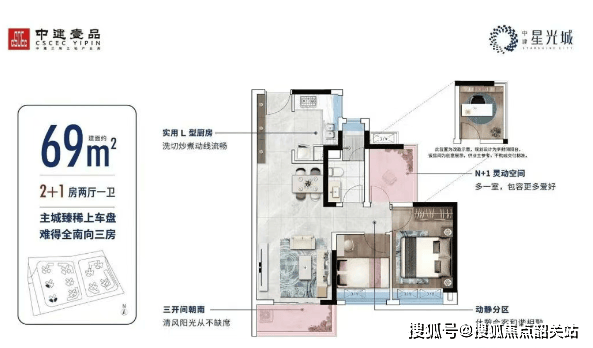 目前,中建星光城在售户型包括69平方米至100平方米的精装修住宅,涵盖了从精致刚需型到舒适改善型的不同需求: