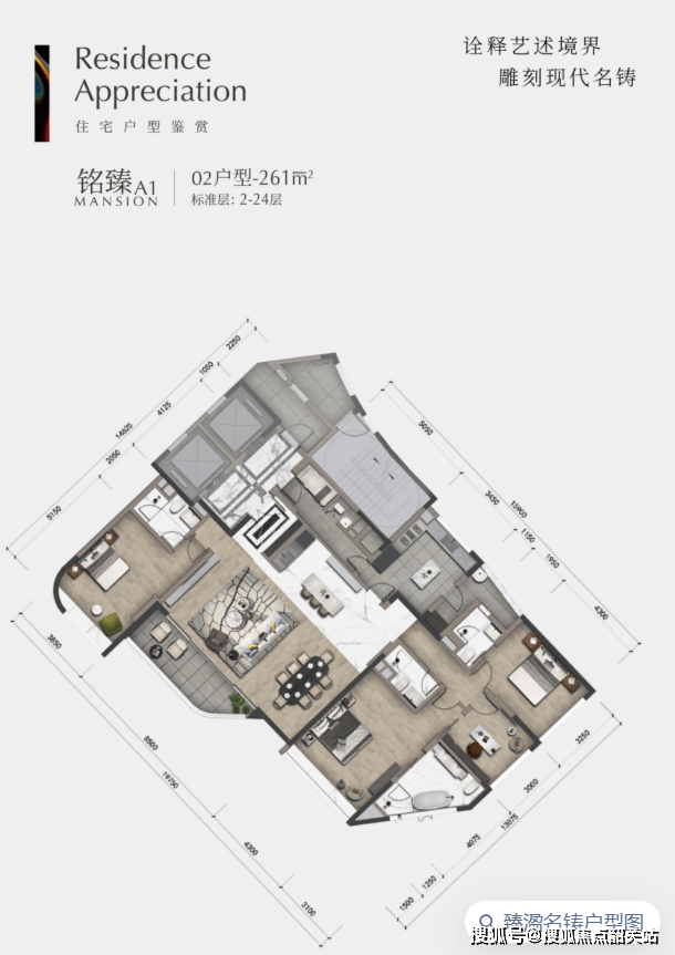在项目的产品分布上,合景臻溋·名铸提供了丰富多样的选择,以满足不同客户的需求。目前主要在售的少量现楼产品中,公寓部分包括B1和B2栋的322-405㎡四房户型,以及B3栋的500-532㎡四房户型。这些商业大平层层高约3.5米,空间感极强,整体格局合理,动区空间充足,非常适合用作企业总部、私人会所或高端投资。住宅部分则包括A2、A3栋的189㎡三房户型和368㎡四房户型,以及A4栋少量现楼的267-280㎡四房户型。其中,A1栋的住宅产品尚未对外推售,保留了更多的期待与想象空间。