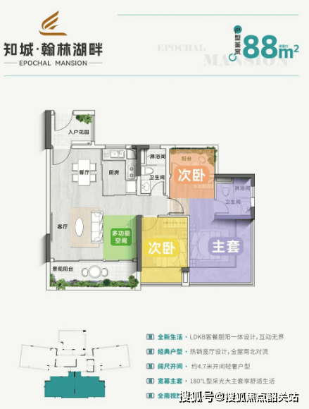知城翰林湖畔提供从66至103平方米的三至四房户型选择,所有户型均采用全明设计,通风采光良好,LDKC客餐厨阳一体化设计的共融巨厅,百变灵动空间,满足每个家庭成员的生活需求。超高空间实用率使得每一寸空间都得到充分利用,是目前整个知识城板块内实用率最高的新楼盘之一。