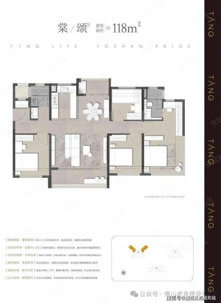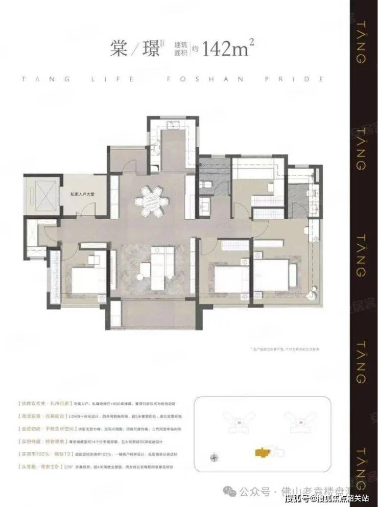 在产品力打造上,三龙湾金茂晓棠堪称区域内的标杆项目,深度依托佛山最新的建筑规划政策,实现了超高的户型实得率,主力户型实得率最高超过 100%,同等建筑面积下,比周边同价位项目多出一间房间的实用空间,极大地提升了房屋的性价比。从户型设计到空间规划,都充分贴合现代改善家庭的居住需求,无论是刚需首改的 98 平方米户型,还是终极改善的 142 平方米户型,都做到了空间布局合理、采光通风优异、收纳系统完善,两梯两户专梯专户的设计,更是在同价位楼盘中脱颖而出,大幅提升了居住的私密性与舒适度,形成了对周边竞品的降维打击。