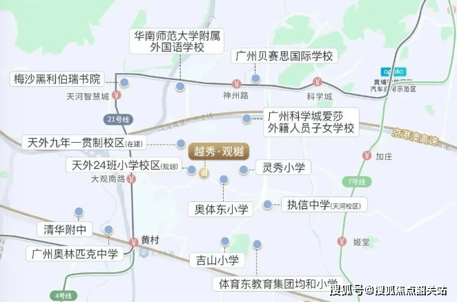 中学:项目所在片区中学划片范围潜力巨大。同时,周边3公里范围内汇聚了清华附中湾区学校、执信中学天河校区等多所省市名校(学区划分以教育局当年公布为准)。