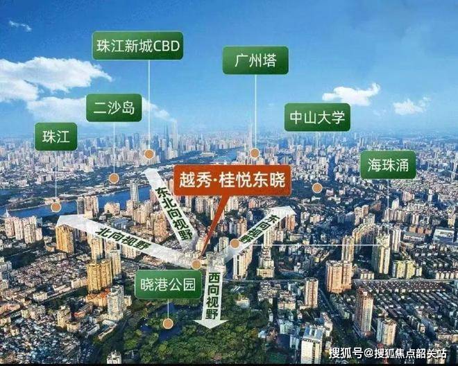 景观升级:东望中大、广州塔;北望二沙岛珠城,西南向直望晓港公园