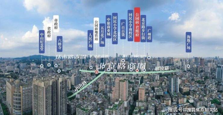 君熙府项目就坐落于解放中路392号,这一地址本身就代表着一种尊贵与稀缺。解放路作为广州东西向的交通大动脉,串联起了城市的各个重要节点,而公园前站更是地铁一号线和二号线的双线交汇点,构成了广州轨道交通网络的“心脏”位置。对于居住在君熙府的业主而言,这意味着他们站在了整个广州交通网络的中心点上。