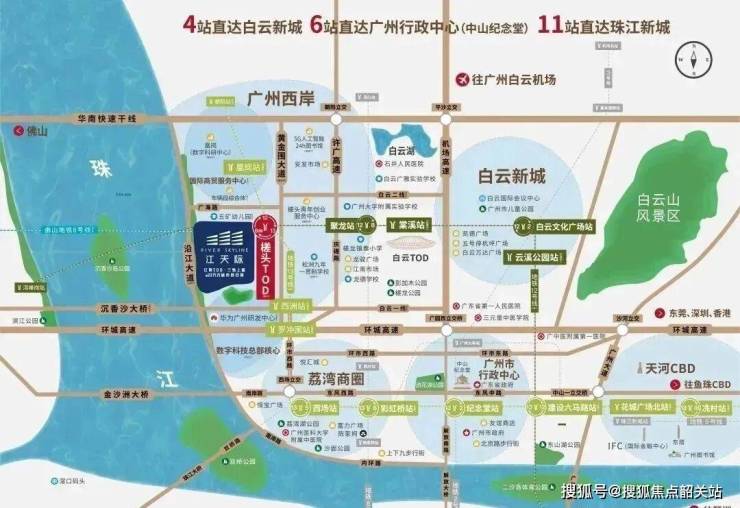 五矿招商江天际是位于白云区广海路的白云槎头站上盖TOD项目。它东侧紧邻珠江西航道,对面则是佛山南海。拥有独特的一线江景。