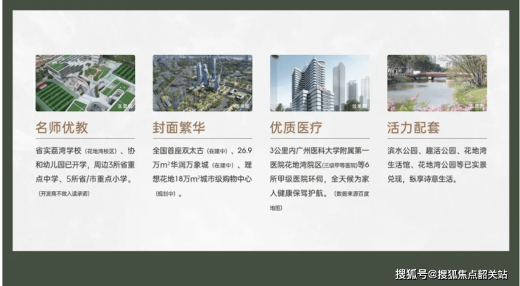 项目周边商业资源丰富,包括在建的18万㎡城市级购物中心、双太古及26.9万㎡华润万象城等大型商业综合体,覆盖国际一线品牌、高端餐饮及娱乐休闲。教育资源方面,省实荔湾学校(花地湾校区)、协和幼儿园以及周边多所省重点中学和小学,形成从幼儿园到中学的全龄优质教育体系,为孩子成长提供保障。医疗方面,区域内拥有三甲医院及社区卫生服务中心,确保居民健康生活。公园和休闲设施方面,滨水公园、趣活公园及花地湾生活馆提供优质自然环境,生态与城市便利高度融合。