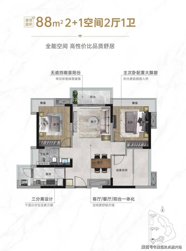 如果是首套置业,可以看看建面约88㎡2+1房。