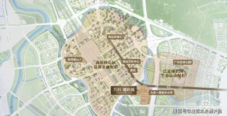 生活资源方面,项目自身配建了约3000㎡的社区商业街,虽然规模不大,但满足日常买菜、咖啡、药店等需求应该够用。更大的利好在周边:南站ICC首期商业已封顶,计划2026年陆续开业;花城汇·南站(建面超26万㎡)正在招商;步行范围内的喜街HeyBlock已经有不少餐饮店营业。教育上,地块内配建36班九年一贯制中小学和9班幼儿园,合作方是湖南师范大学附属番禺学校,预计2027年9月开学。医疗则有UCLA Health附属医院投入运营,距离项目约2公里。