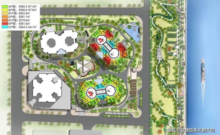 产品建筑面积为64-68平方米的复式产品,使用率高,另外项目为7.15米江景复式产品,有4.65米中空会客厅,透过全落地玻璃幕墙, 极目远眺视野的高度是一般复式所不能媲美的。
