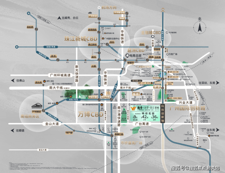 项目位于广州番禺大学城二期,毗邻华南理工大学、暨南大学等12所高校,汇聚超10万高知人群。区域内规划为“广深科技创新走廊”核心节点,2025年预计引入超200家科技企业,区域价值持续攀升。