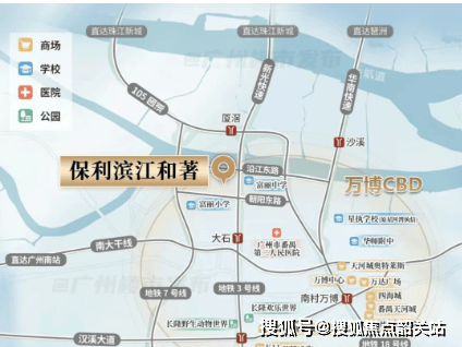 商业氛围浓厚,约 5KM 范围内近享 K11Select、万象系商业、万达广场等 9 大商业体,驾车可直达珠江新城 & 琶洲 CBD 商圈,小区附近建华汇、万仓隆、港润购物广场等醇熟商圈能保障基本生活需求,大型购物可前往万博、琶洲、珠江新城等商圈,繁华与静谧和谐共生。