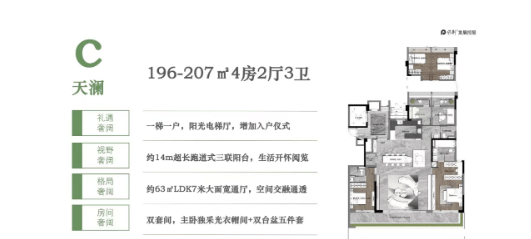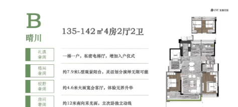 保利·湖光悦色推出多种户型选择,包括120-130㎡四房两厅两卫、135-142㎡四房两厅两卫以及196-207㎡四房两厅三卫等。每个户型均采用了全南向板式楼设计,户户朝南,保证了充足的采光和通风条件,同时配备了7-14米开间的奢阔阳台,提供了极佳的观景视野。