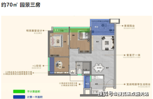约70㎡园景三房:紧凑实用,适合小家庭居住。