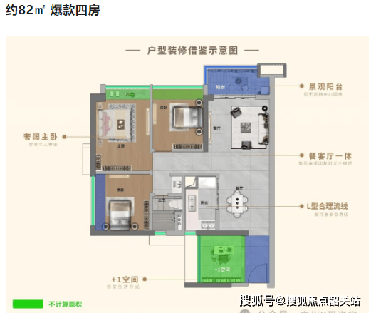 约82㎡爆款四房:功能分区明确,空间利用率高。