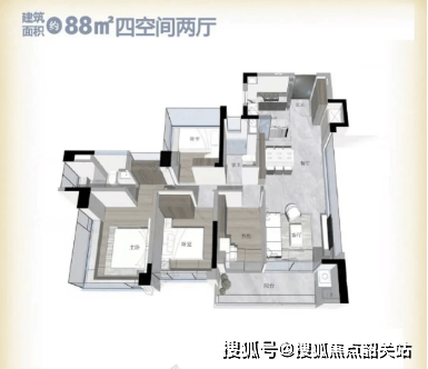 【项目建面约 88㎡四房户型设计详解】