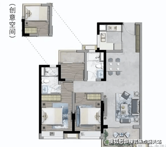 81㎡ 2+1房2厅1卫:总价约为218-228万元