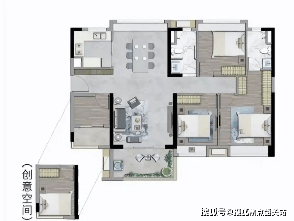 113㎡ 3+1房2厅2卫:总价约为348-368万元