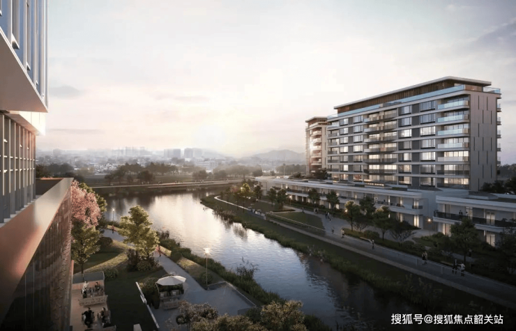 茗筑水岸项目的容积率仅为1.5,建筑高度限制在30米以内,整体呈围合式布局,每栋楼高7-8层。南北两个地块被河涌自然分割开来,形成了独特的景观特色。小区内部绿化率较高,为居民提供了舒适的居住环境。