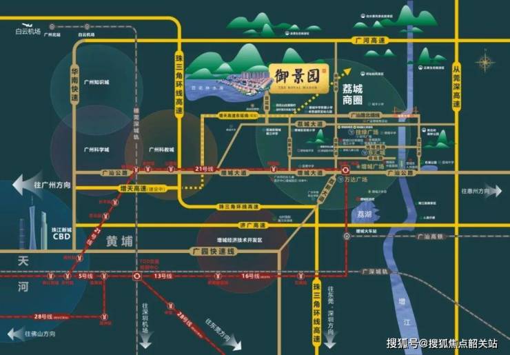 交通配套:百花山庄御景园位于国家“粤港澳大湾区”的广州增城区内,是整个粤西区域链接大湾区的枢纽核心。享有3座客运枢纽+3条国铁+1条城轨+4条地铁+2条高速+2条城市公路。