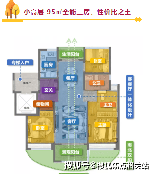 8、越秀天悦金沙户型设计:全南朝向为主,采光通风俱佳