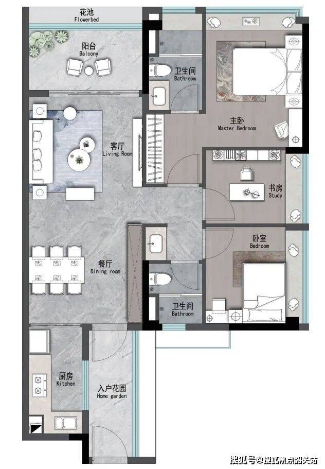 建面约107m² | 4空间二厅二卫
