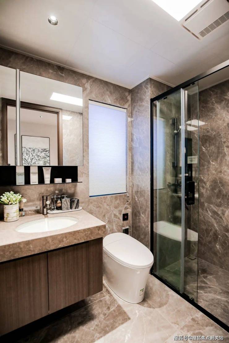 卫浴交标,镜柜比别人多出金属托和镜前灯,底下做了开放式收纳架,日常用品随手抓取,收纳分类,设计科学。主卫带有抽拉龙头,卫浴金属壁龛,当下小红书上最热门的家装设计,洗浴用品随心放;三联淋雨屏通风不藏污,还配置智能马桶、清洁喷枪、枪色卫浴五金、暖风机等贴心实用的交标。