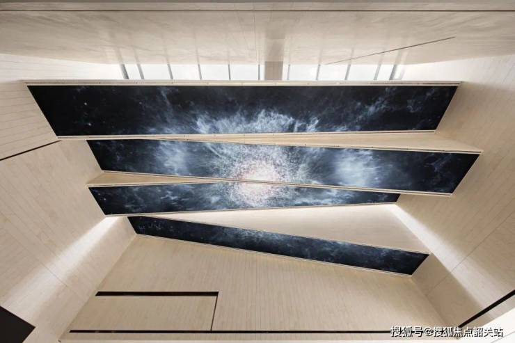 沙盤區以流動性的四條LED屏高低錯落地投下影屏,冰與火之間,毅然有綻放與碩果。在浩然的星空下四處遊動,讓整個空間裏靈動而自由。