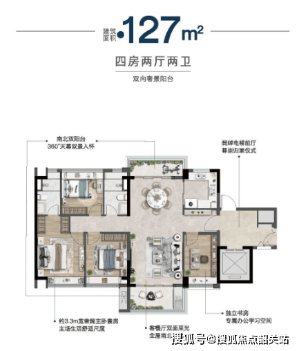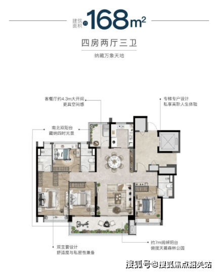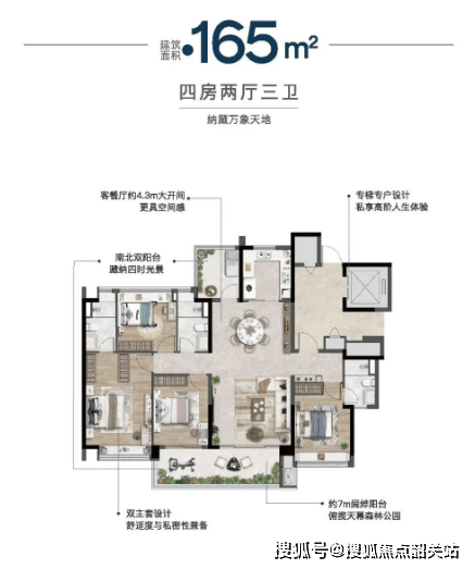 振业天成主打建面约104-168㎡全四房户型,采用两梯两户或两梯三户设计,营造了更强的隐私感。小区建筑密度仅19.5%,容积率为2.0,提供了宽敞舒适的居住环境。每栋楼间距约为200米,确保了每一户都能享受到绝佳的景观视野。