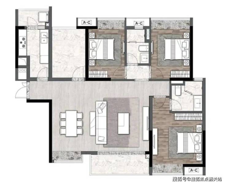 90㎡ 三房两厅:紧凑实用,适合年轻家庭或首次置业者。