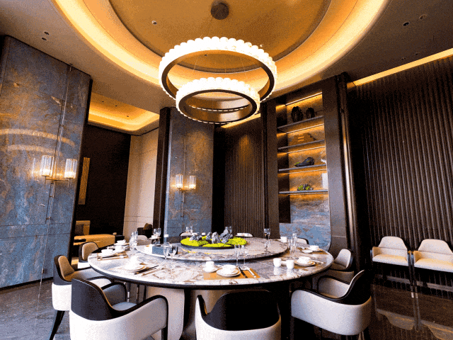 项目自带超 1600㎡五星级酒店式双会所,首层会所大堂空间超 300 平米,层高 5.5 米,地面、背景墙、立柱等采用多种天然奢石打造,尽显奢华。负一层会所配备约 25 米长的泳池,采用普拉达绿大理石通铺,设施对标五星级酒店。