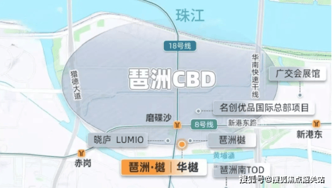 琶洲·樾|华樾紧邻琶洲西区最核心的地铁站——磨碟沙地铁站,该站是8号线和18号线双线交汇处,直线距离仅约200米。同时,在建的12号线赤沙站也位于小区附近,进一步增强了项目的交通便利性。
